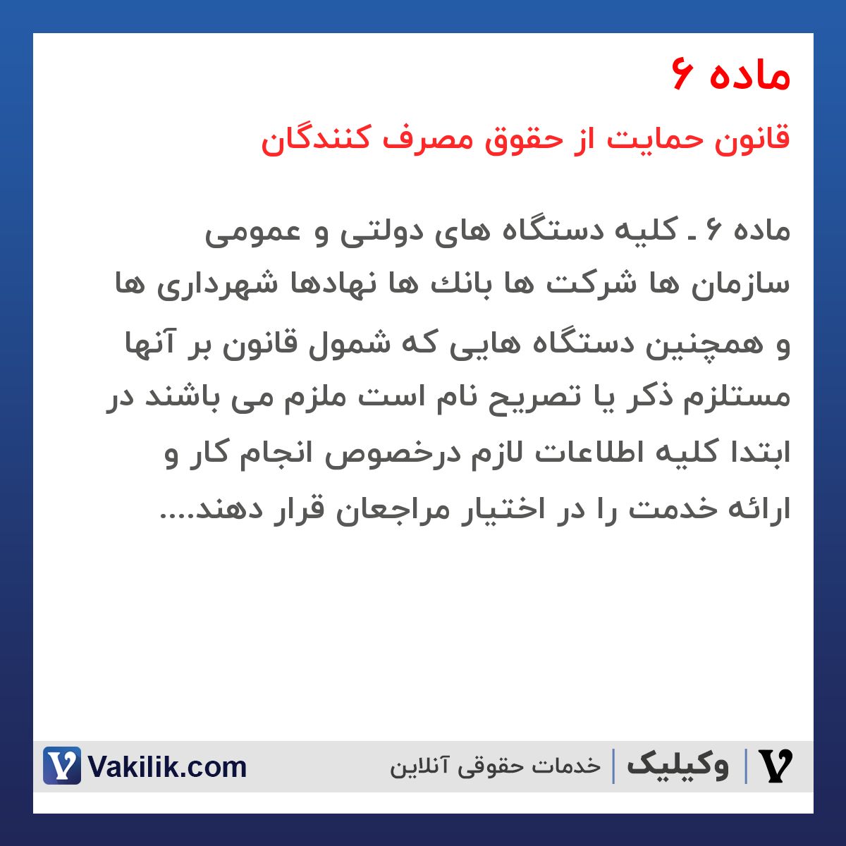 متن کامل ماده 6 قانون حمایت از حقوق مصرف کنندگان.