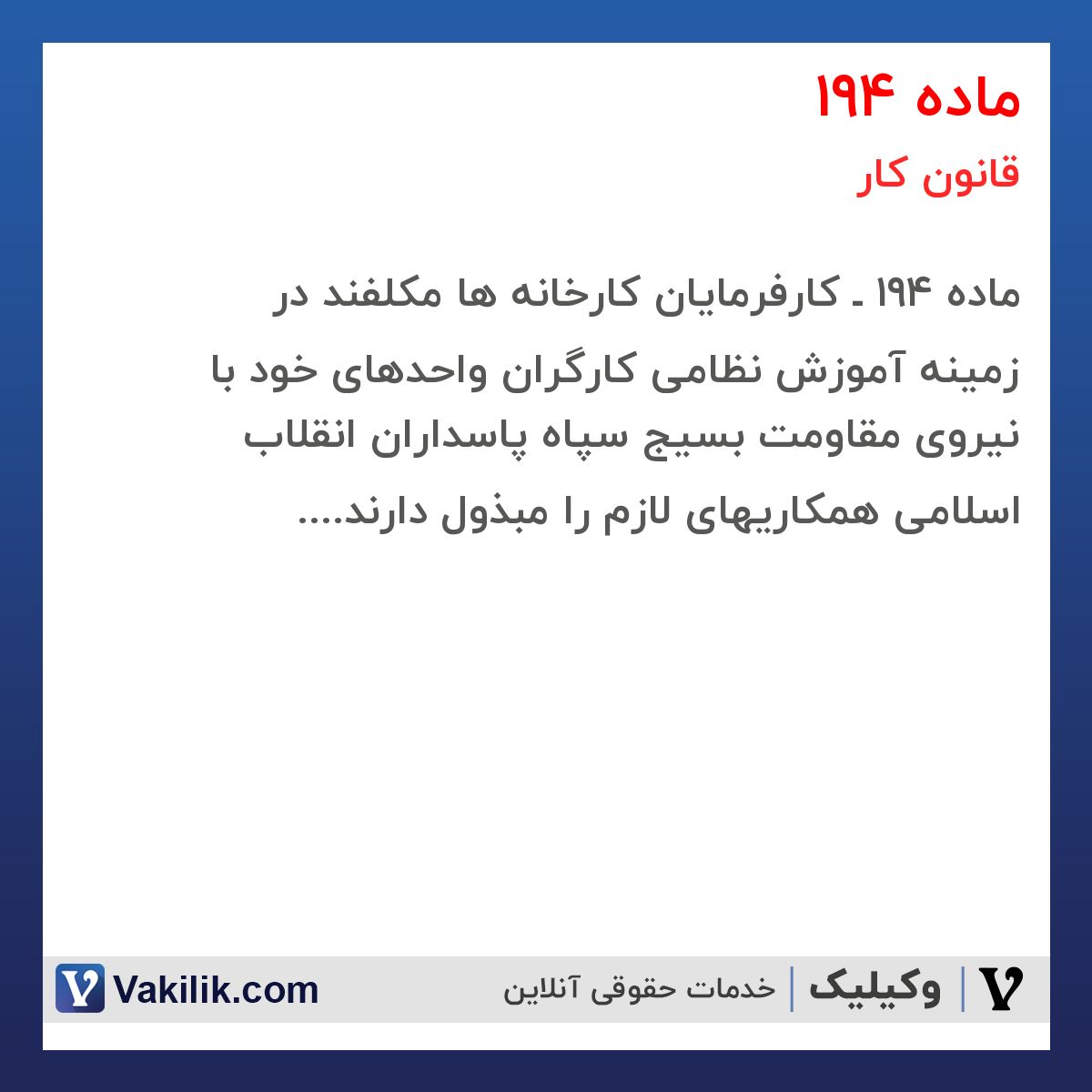 متن کامل ماده 194 قانون کار. ماده 194 ق ک ماده 194 قانون ک ماده 194 ق کار ماده 194 حقوق کار